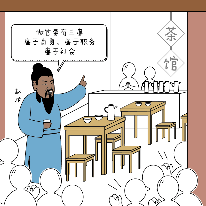 冰冻三尺非一日之寒,吏治久废,惰习日积,越发坚定赵抃整顿吏治的决心。他对大家说,这次他向皇上主动请缨来成都,就是要碰一碰各级官员中的腐化问题,为百姓伸张正气。他提出了“三廉”的施政理念:“首先就要廉于自身,从自己做起;其次还要廉于职务,不能利用手中的权力谋私利,要干净干事;最后要廉于社会,提倡节俭,反对奢靡。各位可以相信,我不会随波逐流,更不会同流合污!”
